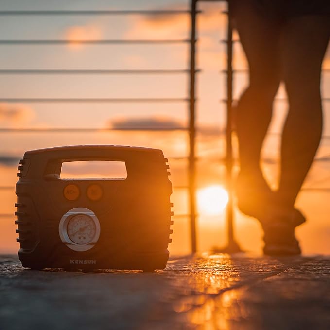 Kensun AC/DC Power Supply Portable Air Compressor Pump with Analog Display to 100 PSI for Home (110V) and Car (12V), Tire Inflator with Adaptors for Cars, Trucks, Bicycles, Balls