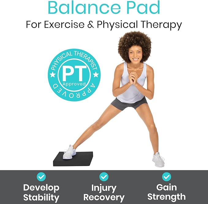 - IMPROVE STRENGTH, BALANCE AND MOBILITY: Easily integrating into any workout routine, physical therapy or rehabilitation program, the Vive balance pad provides a safe, destabilized surface to improve overall balance and increase core strength. Perfect for seniors and those recovering from injury or surgery, the durable foam balance pad increases joint stability and motor skills, safely strengthening weak ankles, knees and hips.
