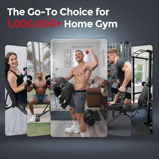 - ASTM-Certified & 800lbs Heavy-Duty Support: Its elongated thickened steel frame, dual-triangle structure, and double-locking mechanism reliably support up to 800lbs; weighing 28.5 lbs, it is designed for fitness enthusiasts—whether beginners seeking long-term use or pros upgrading—the FB800 delivers a trustworthy solution in home gym