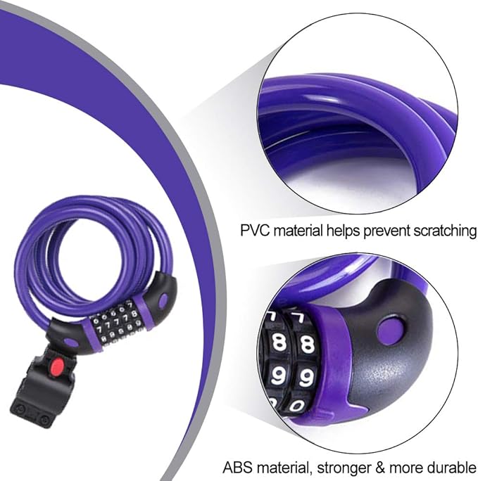 - SECURE & RESETTABLE: NDakter bike locks with 4FT long cable (distance between ends of lock), and this bike lock is 5-digit resettable combination cable bike lock, much safer than other 4 digit bicycle lock. Easy to set your own personalized number combination.(Safety tip: Please do not leave your bike out of your sight for too long, especially in high crime areas, no bike lock is 100% safe.)