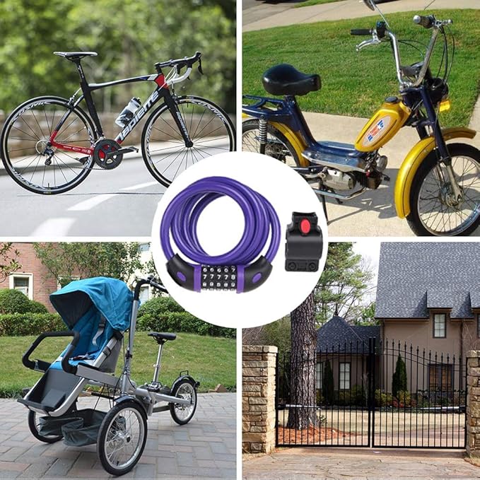 - MULTI-PURPOSE: The cable is 4 feet, long enough to lock 2-3 bikes together, or lock your bike to a tree, gate, fence, railing, thick pole and others. The lock can also be used for motorcycles, scooters, skateboards, grills, ladders, doors, lawnmowers and many others.