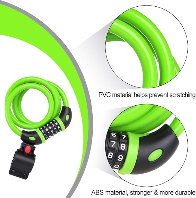• SECURE & RESETTABLE: NDakter bike locks with 4FT long cable (distance between ends of lock), and this bike lock is 5-digit resettable combination cable bike lock, much safer than other 4 digit bicycle lock. Easy to set your own personalized number combination.(Safety tip: Please do not leave your bike out of your sight for too long, especially in high crime areas.)