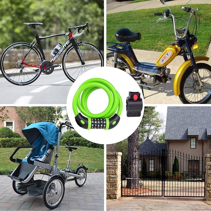 • MULTI-PURPOSE: The cable is 4 feet, long enough to lock 2-3 bikes together, or lock your bike to a tree, gate, fence, railing, thick pole and others. The lock can also be used for motorcycles, scooters, skateboards, grills, ladders, doors, lawnmowers and many others.