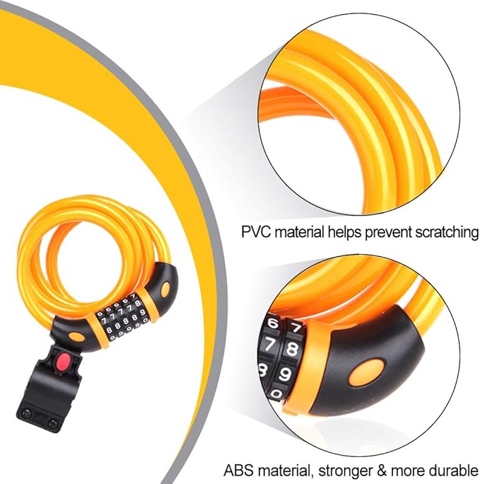 - SECURE & RESETTABLE: NDakter bike locks with 4FT long cable (distance between ends of lock), and this bike lock is 5-digit resettable combination cable bike lock, much safer than other 4 digit bicycle lock. Easy to set your own personalized number combination.(Safety tip: Please do not leave your bike out of your sight for too long, especially in high crime areas.)