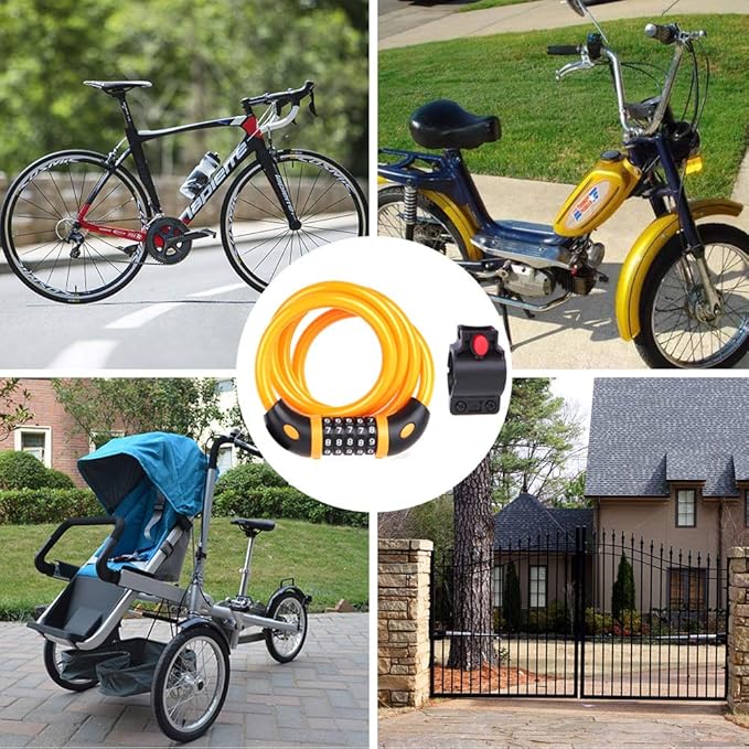 - MULTI-PURPOSE: The cable is 4 feet, long enough to lock 2-3 bikes together, or lock your bike to a tree, gate, fence, railing, thick pole and others. The lock can also be used for motorcycles, scooters, skateboards, grills, ladders, doors, lawnmowers and many others.