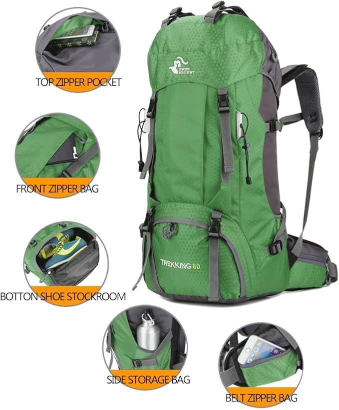 • Large Capacity & Multiple Compartment: Large capacity with a spacious main compartment and multiple pockets provide enough room for 3 or 4 day trips. Special main compartment drawstring closure design to prevent items from falling out of the backpack. With an inner pouch for a water bladder, two side pockets to carry extra water bottles. Separate shoe storage pouch to prevent items inside the backpack from getting dirty, convenient and practical. Meets most airline size requirements.