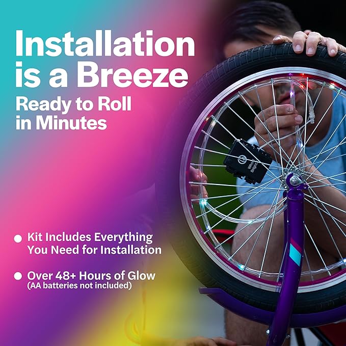 - INSTALLATION IN A SNAP - Our easy-to-install bike spoke lights are battery-powered and ready to go. Perfect as kids bike accessories for boys, and girls of all ages, and even bike enthusiasts at raves like burning man. Ride and shine in style