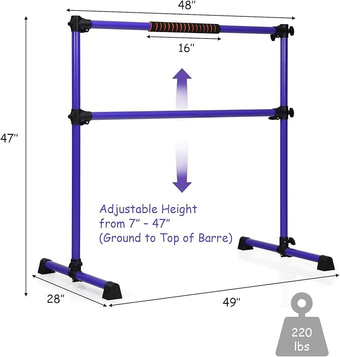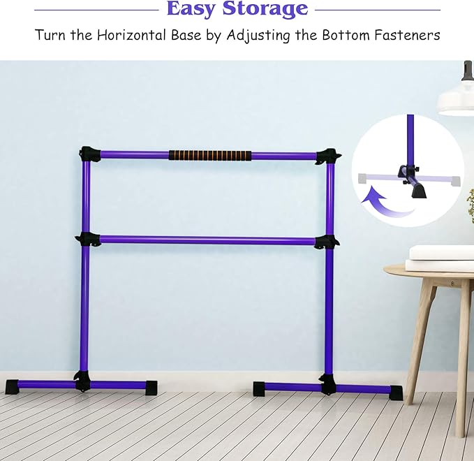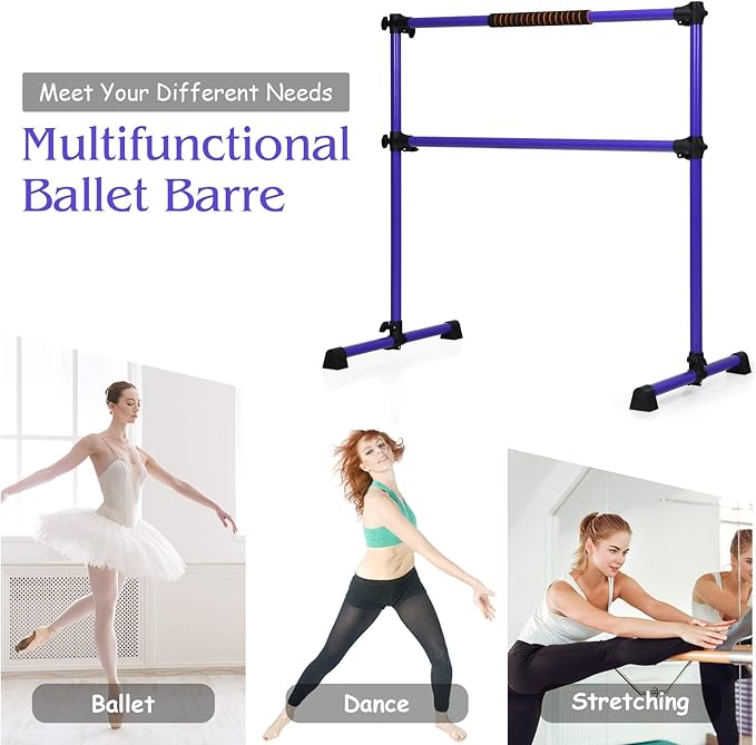 - Adjustable height: This freestanding ballet barre has 6 high quality fasteners for easy adjustment. The middle detachable crossbar can be adjusted from bottom to top 47". You can adjust the height of the ballet barre to your needs.