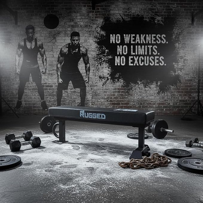RUGGED STRENGTH Flat Weight Bench - 47” Heavy Duty 2x3” Steel Frame, 3.5” Thick Cushion, 1500 LB Capacity – Commercial Grade Workout Bench for Home Gym & Strength Training