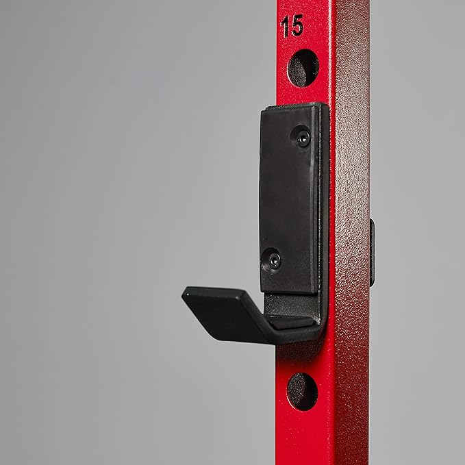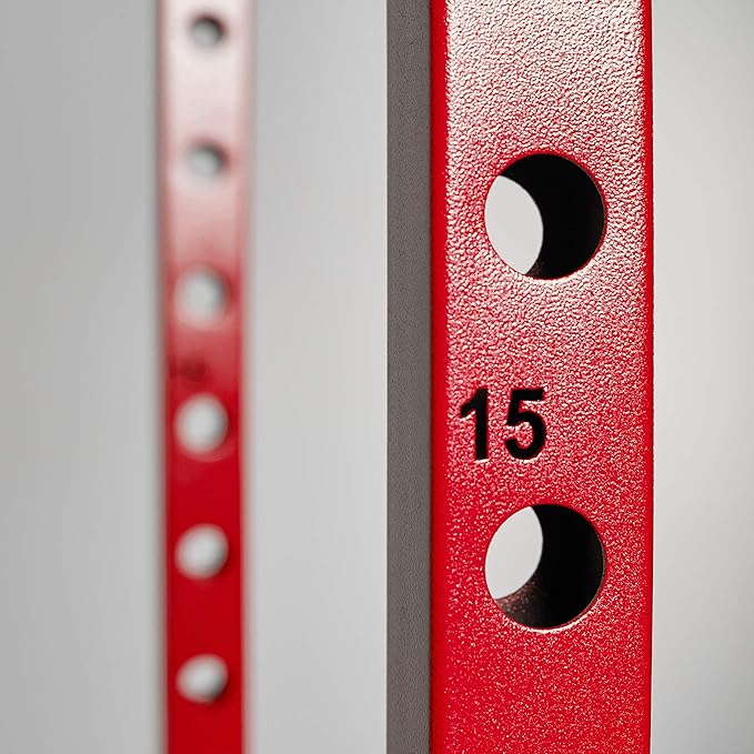 - WHAT’S INCLUDED: One Red PR-1100 power rack. Each weight cage comes with an integrated pullup bar, (2) j-cups, and (2) full length safety bars.