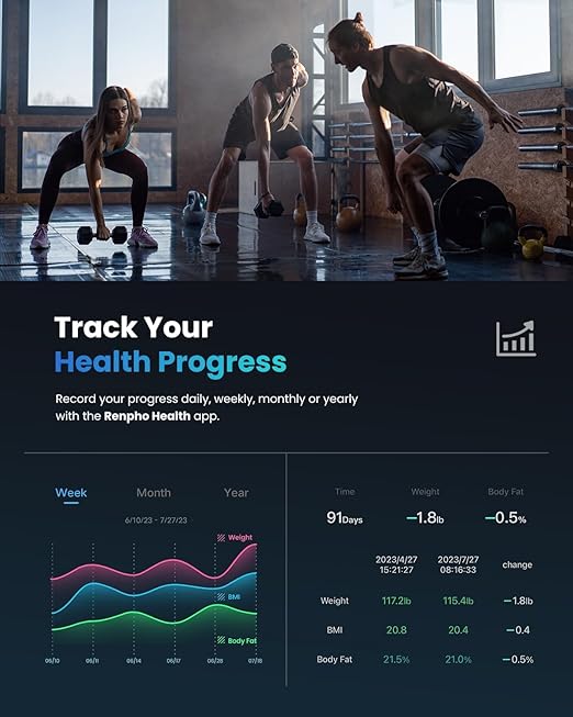- Comprehensive Body Data: The Renpho Health app can measure 13 body data such as weight, body fat, BMI, muscle mass, and bone mass. When using a body fat scale, you can weigh at any time without opening the app. After connecting again (step on the scale), the data will be synchronized to the app