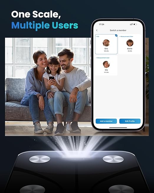 - Family Weight Scale: Renpho Health app can add up to 20 users, perfect for family use. Digital bathroom scale allows you to track information, record data, store profile, and make a chart to visualize your trend. Baby Mode recording changes and tracks the weight of babies and pets