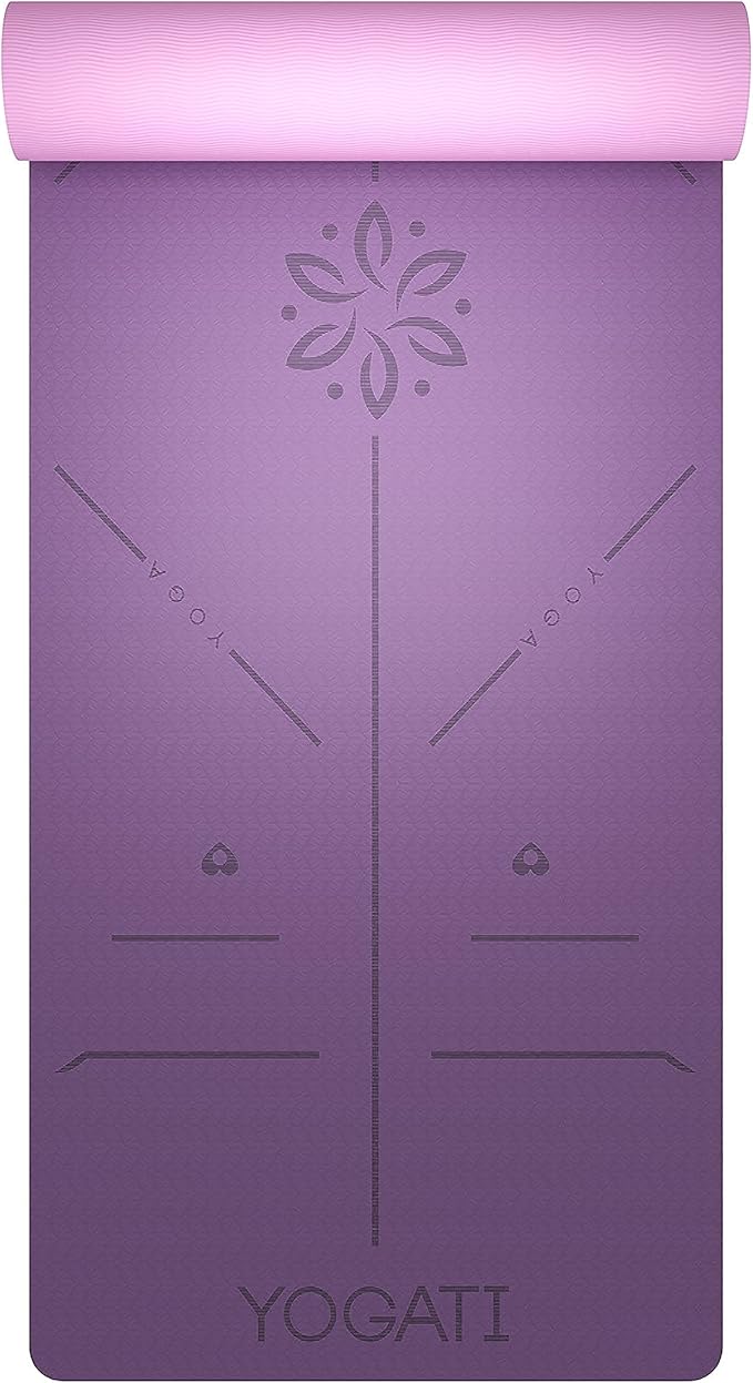 YOGATI® Non Slip Yoga Mat with Alignment Lines. Home Workout Mat for Women, Men and Kids. Thick Yoga Mats with Strap for Pilates and Fitness.