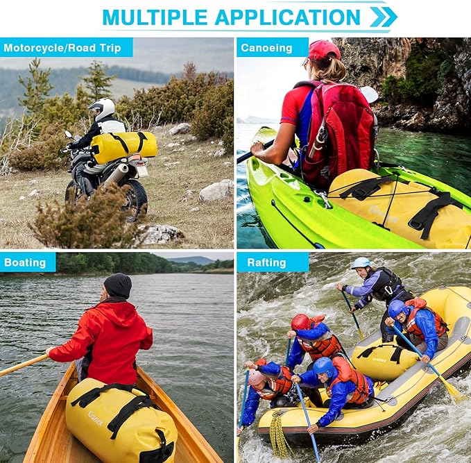 - Multiple uses: With its effective waterproofing, this waterproof dry bag is suitable for a wide range of outdoor activities, such as kayaking, paddleboarding, boating, motorcycle riding, rafting, fishing, diving, and other adventures