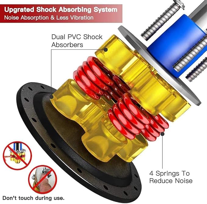 - Advanced shock absorbing system: Dual TPU absorbers and springsx4 achieve 360° shock and noise absorption. TIP: springs can be removed for less vibration to do intensive strength training