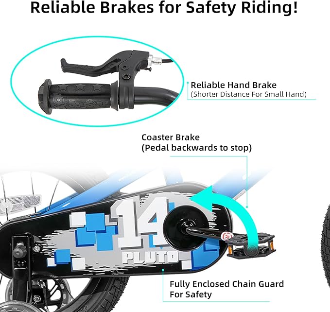 - DIY DECAL & SAFE CHAIN GURAD - Your child will get a DIY decal, they could make a unique bike with the decal by sticking their name on the frame or chain guard. The chain guard well protects the chain, it will last longer than other bikes, your child will not get hurt when try to touch the chain.