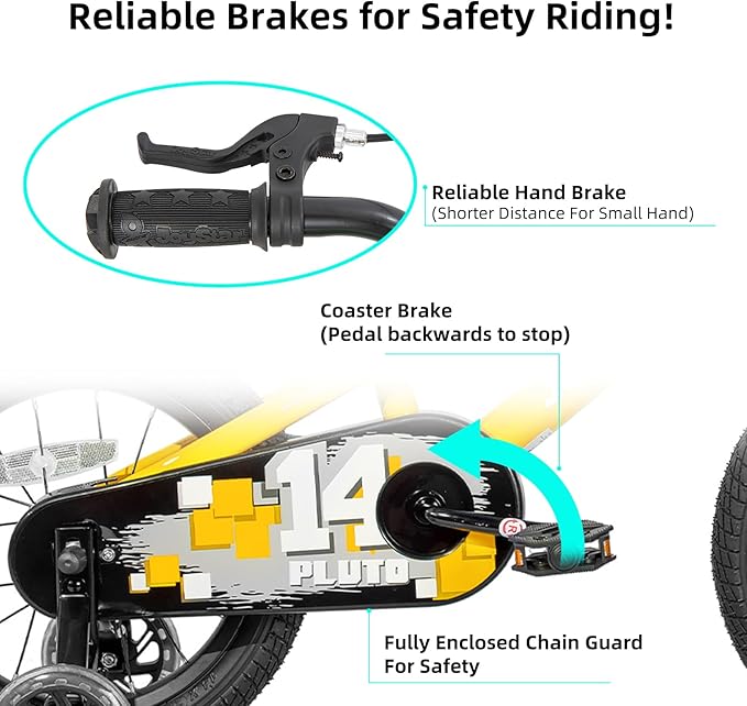 - DIY DECAL & SAFE CHAIN GURAD - Your child will get a DIY decal, they could make a unique bike with the decal by sticking their name on the frame or chain guard. The chain guard well protects the chain, it will last longer than other bikes, your child will not get hurt when try to touch the chain.