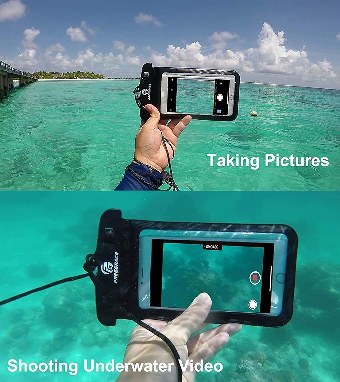 • ✔ PROTECT YOUR CELL PHONE AND MAKE THE MOST OF YOUR WATER SPORT ACTIVITIES: This set also includes a must have IPX8 Certified Waterproof Phone Case (3.9" x 6.7"). This amazing dry cell phone case features a very simple snap and lock access that has dual-sided clear windows that allow you to text, talk on the phone, take pictures and video while still inside the case. Suitable for phones up to 6.5 Inches of diagonal screen size.