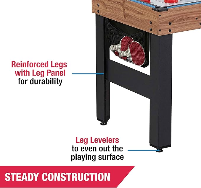 - Ready, Set, Play: All Accessories Needed Are Included With Your Combo Game Set - Basketball, Air Pump, Needle, Billiard Balls, Cues, Brush, Ball Rack, Chalk, Hockey Pushers, Pucks, Table Tennis Balls And Paddles, Foosball