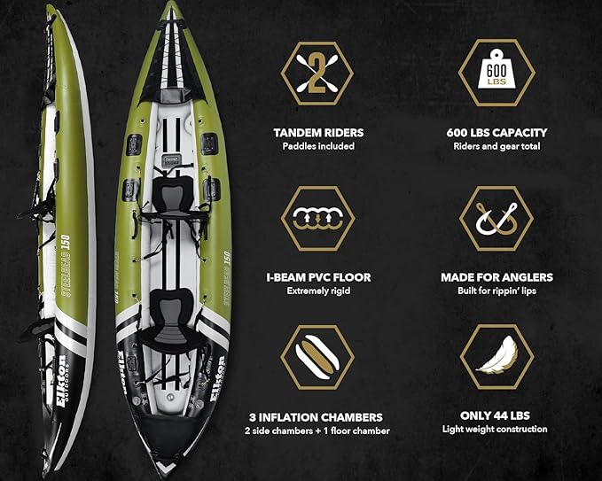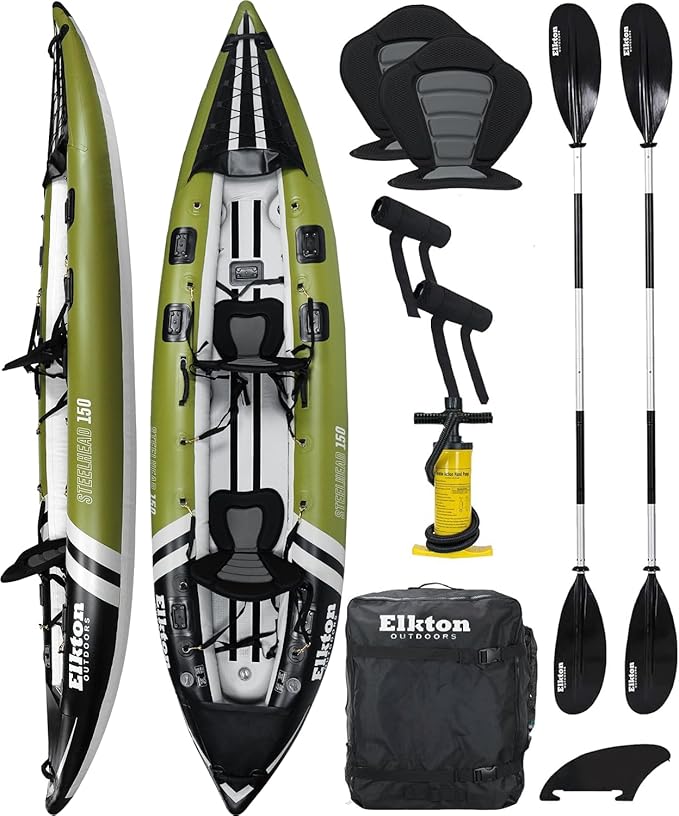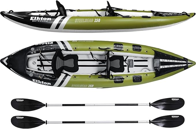 - STAND UP CASTING - The Rigid Dropstitch Floor is an excellent fishing platform for both seated and standing casting. The floor also protects the rider and their vessel from underwater obstacles and functions as an excellent and platform to support kayak fishing accessories. Unlike other inflatable fishing kayaks for adults, The Elkton Outdoors Steelhead series will not rip or tear when encountering underwater obstacles.