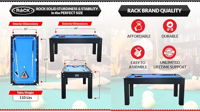 - š± Perfectly Sized Superior Quality Pool/Billiard Table - Become the Pool Shark Master - Table Dimensions: 66" L x 35" W x 31" H ā