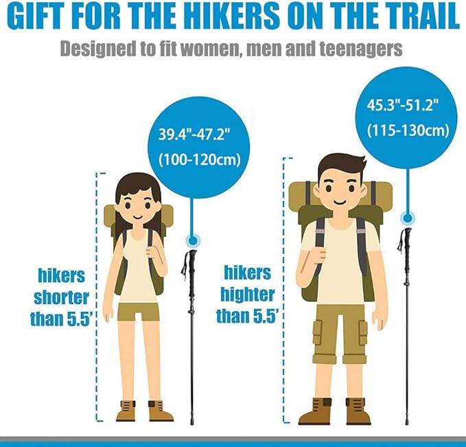 - ★ Collapsible Walking Stick Travel Crutch, Each trekking pole can be extended to 51" inches (130cm). Quick and easy to adjust by hand,suitable for different adult heights.