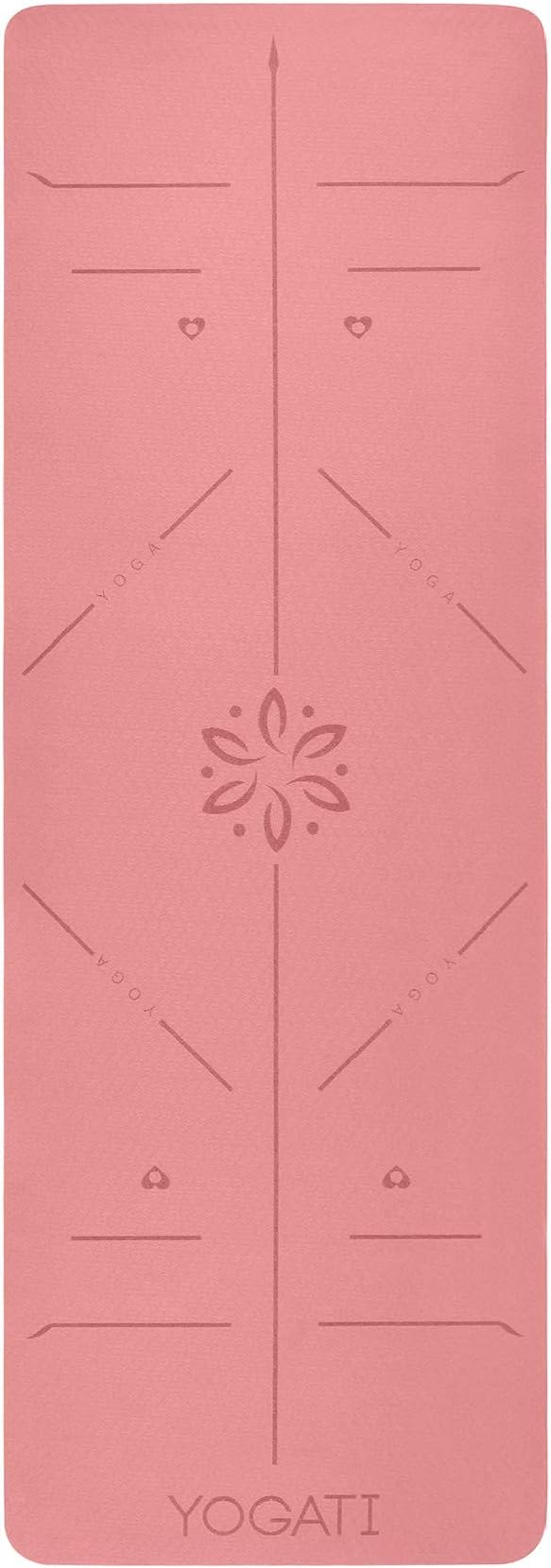 YOGATI® Non Slip Yoga Mat with Alignment Lines. Home Workout Mat for Women, Men and Kids. Thick Yoga Mats with Strap for Pilates and Fitness.