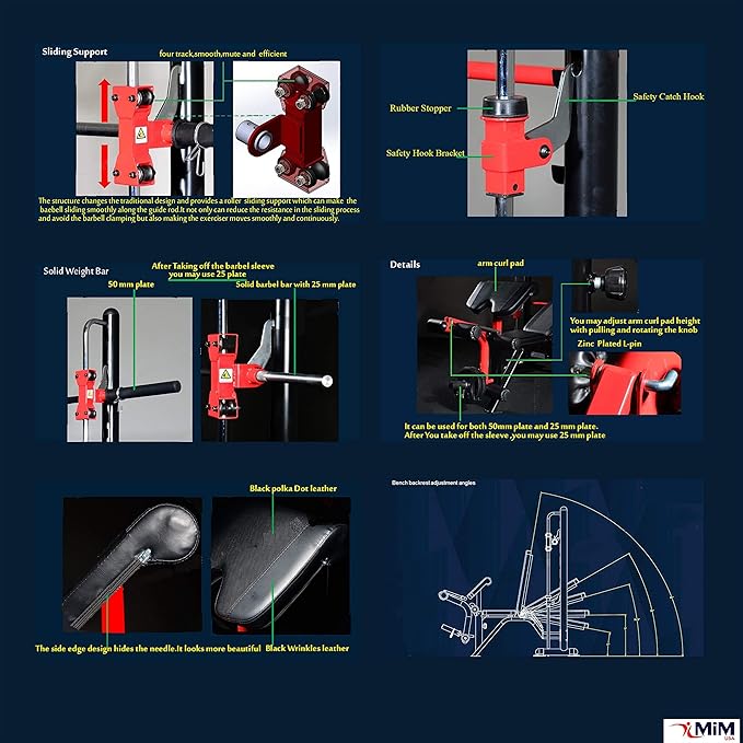- Maximum Safety: Smith Structure,Sliding Support, Safety Catch Hooks, and Rubber Stopper for the maximum safety.