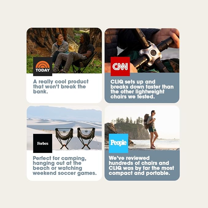 - Built for anywhere: Cliq's foldable chair is super versatile and perfect for all outdoor adventures, or somewhere simple like your lawn. The lawn chair is an essential to add to your outdoor accessories.