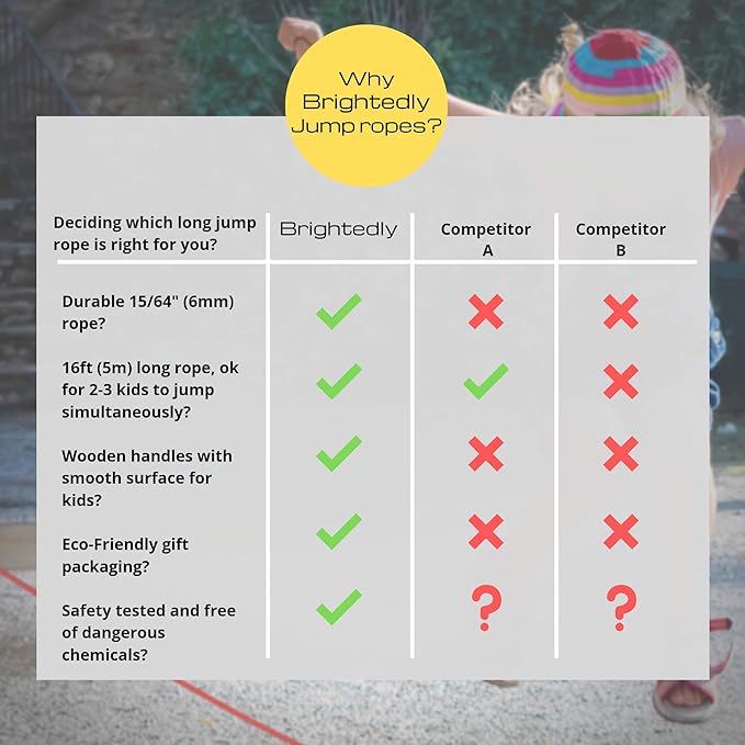 - ✔ DURABLE & FEEL FOR COMFORT - Our Multiplayer Long Jump Rope for Kids is made from high-quality, strong climbing-style braided jumping rope materials that will last and last, plus comfortable wood handles with smooth surface that are easy for kids to hold. Our Multiplayer Jump Rope will be your fun partner for years.