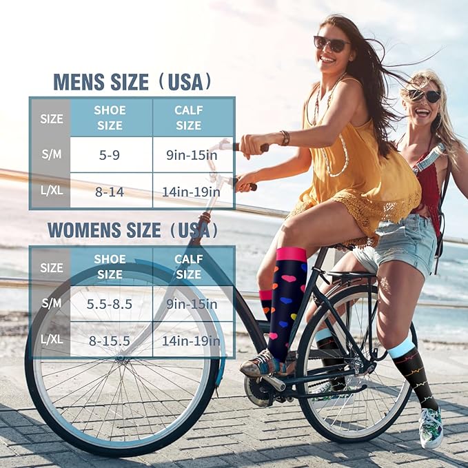 • GIFT IDEA & SATISFACTION GUARANTEED- What's more commendable is ...this is a very suitable compression socks for sharing,a variety of styles,suitable for all kinds of people,you can give them as a gift to your friends,families.It has universal applicability,no matter outside or inside,you can benefit enormously from our progressive compression technology.RISK free,if you are not happy with the purchase for any reasons,contact us for an exchange or refund with no questions asked.