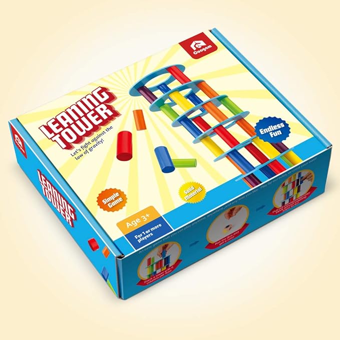 Coogam Wooden Tower Stacking Game, Fine Motor Skill Montessori Building Blocks with Dice Toppling Leaning Tower Toy Party Family Games for Kids and Adults