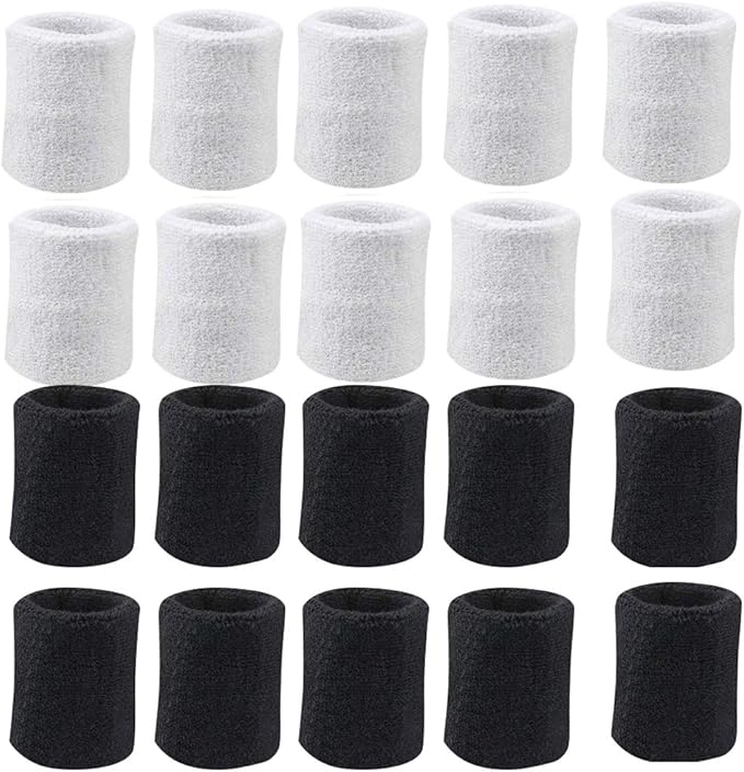 - 10 Pairs Cotton Wristband: black, white wristbands.