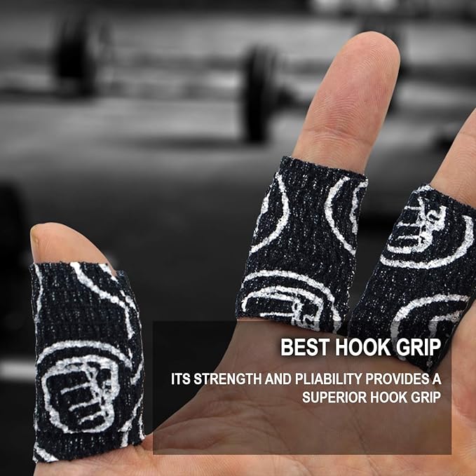 - BEST HOOK GRIP PROTECTION - Our lifting tape conforms for perfect fit hook grip thumb wraps. This elastic cotton tape features premium quality adhesive to produce a high-performance wrap that helps prevent blisters & skin tears while improving lift