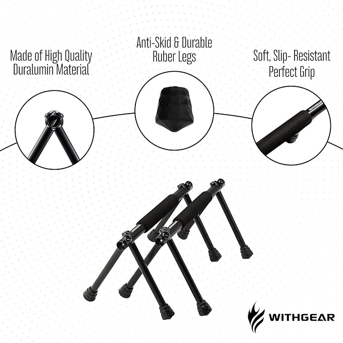 - ✅ PORTABLE & CONVENIENT. Strengthen your fitness game with this perfect pushup bar's sleek and lightweight design that is easily portable for on-the-go use and foldable for effortless storage. It will help save space in your home gym while providing reliable and comfortable home gym equipment and workout accessory.