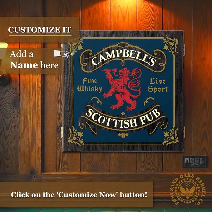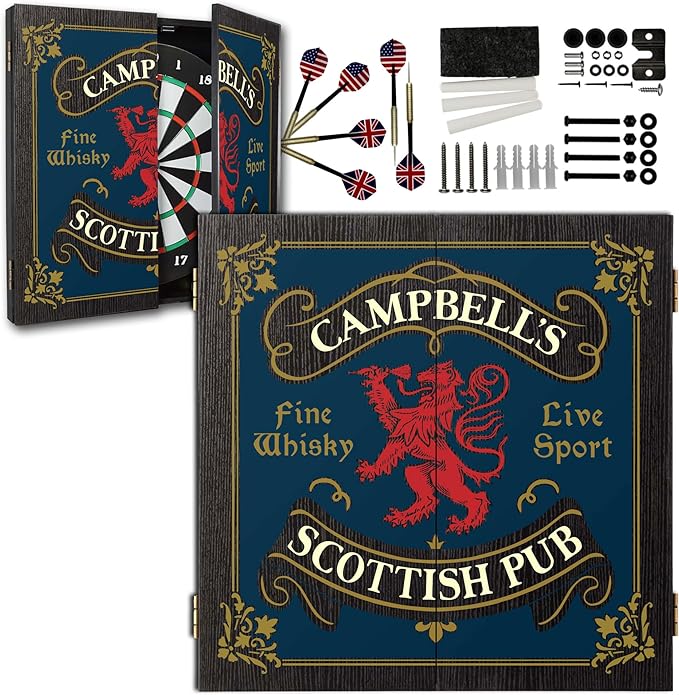 - PERSONALIZED Man Cave Decor & Game Set – Add your name, favorite phrase and special year to create a one-of-a-kind dartboard cabinet that doubles as functional wall decor for your mancave, home bar, games room or garage wall.