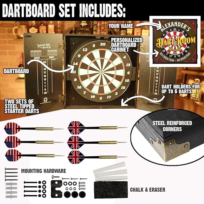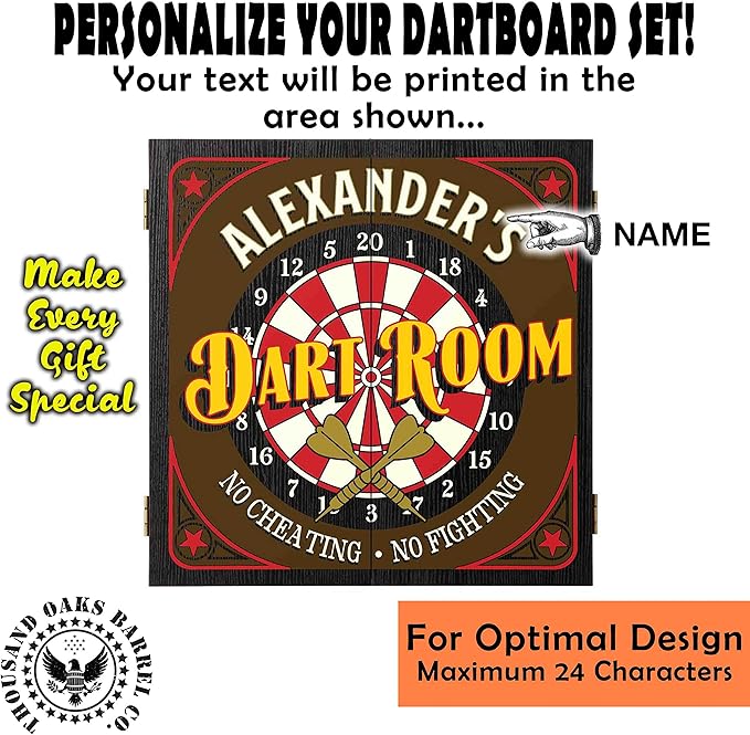THOUSAND OAKS BARREL CO. | Personalized Dartboard & Cabinet Set with 6 Steel Tip Darts