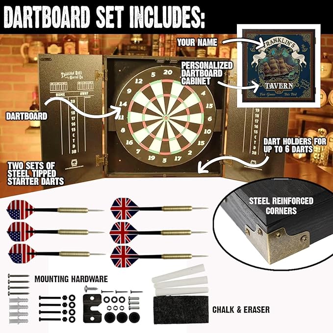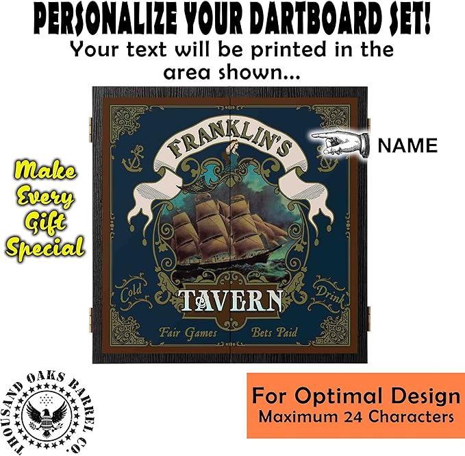 THOUSAND OAKS BARREL CO. | Personalized Dartboard & Cabinet Set with 6 Steel Tip Darts