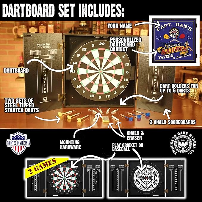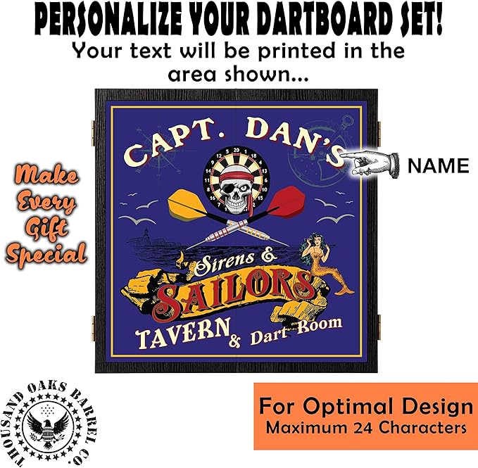 THOUSAND OAKS BARREL CO. | Personalized Dartboard & Cabinet Set with 6 Steel Tip Darts