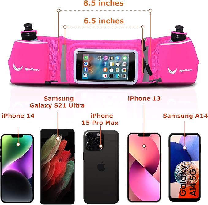 No.1 Hydration Belt by Runtasty - Premium Running Fuel Belt w/2 BPA-Free 10 oz Water Bottles, Tilt-Up Pocket w/Touchscreen-Ready Cover - Fits All iPhones, Runners Ebook & No-Bounce Design