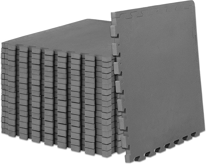 ProsourceFit Extra Thick Puzzle Exercise Mat , EVA Foam Interlocking Tiles for Protective, Cushioned Workout Flooring for Home and Gym Equipment, Grey - 1 inch - 72 Sq Ft - 18 Tiles