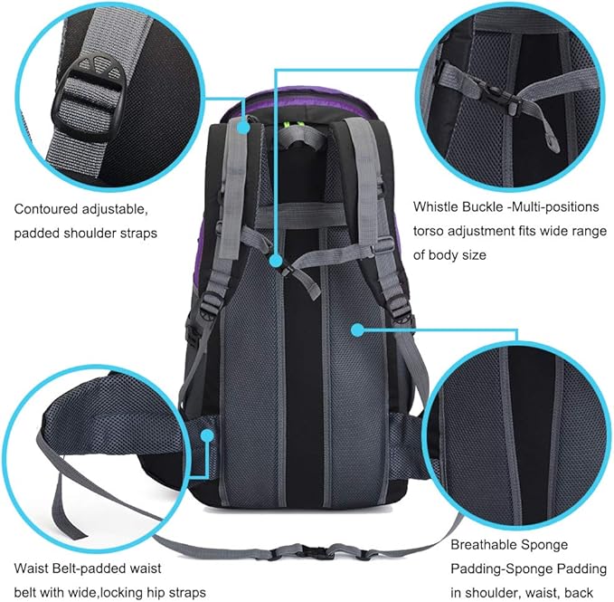 - √ EXCEPTIONAL COMFORT & FIT - Experience unmatched carrying comfort with our camping backpack, featuring adjustable widened straps, enhanced breathability, and padded cushioning designed for the ultimate hiking experience