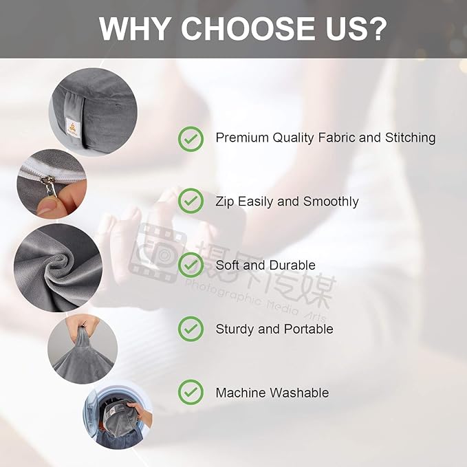 - ✅CONVENIENT. Each zafu meditation cushion has sturdy carry handle for easy transport. The enough buckwheat hulls filling can be added or removed from zipper access to find the optimal level for your body. Velvet cover of Yoga bolster can be machine washed with cold water to reduce the risk of shrink or fade.