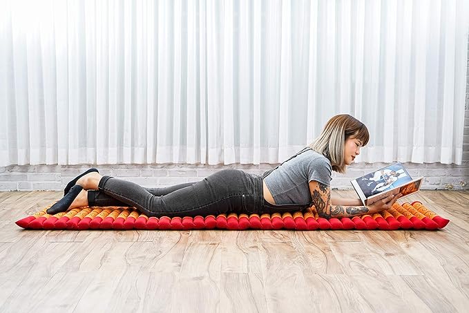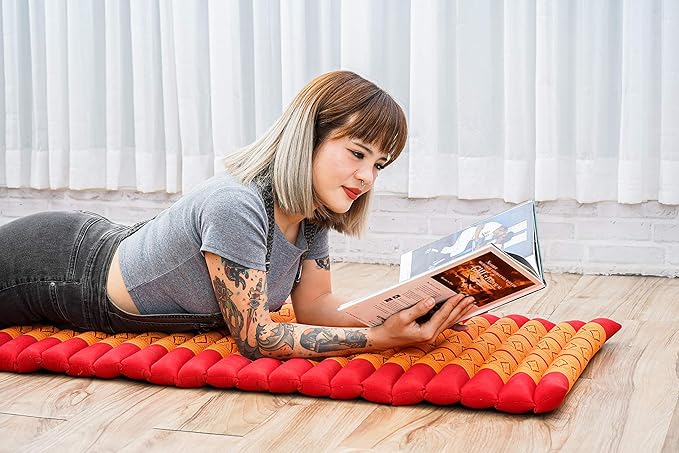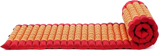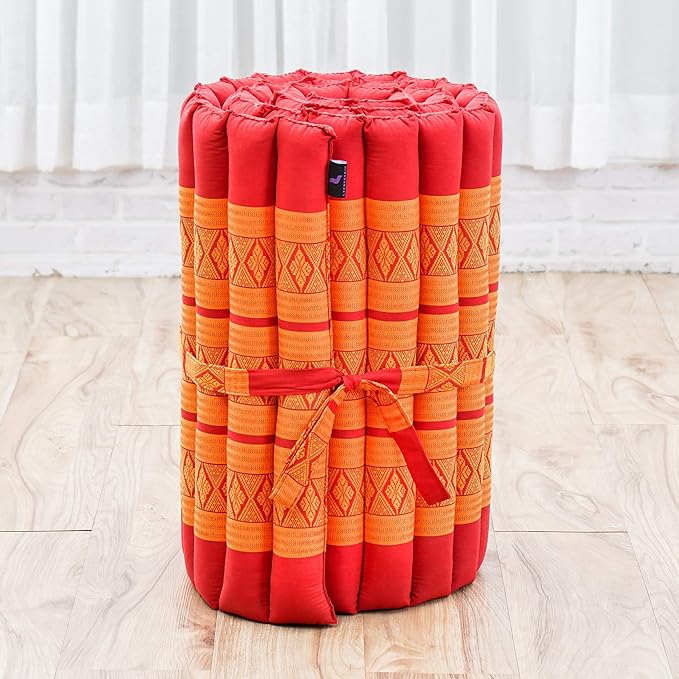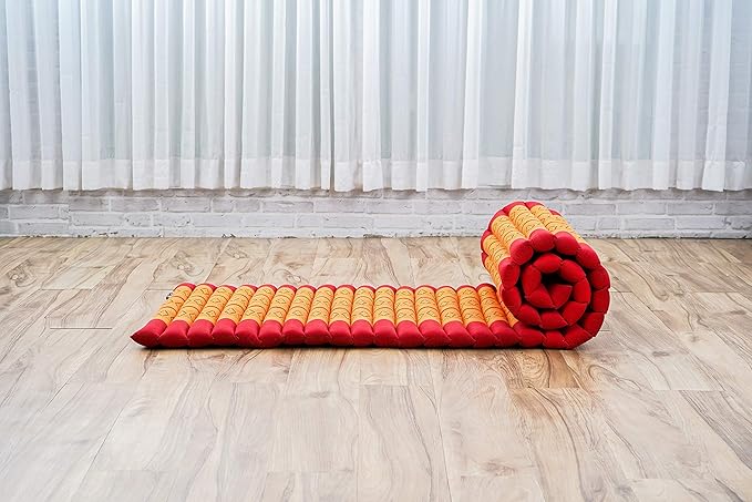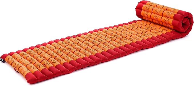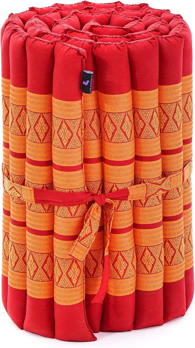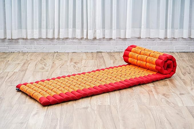 Leewadee - Foldable Floor Mattress - Japanese Roll Up Futon -Trifold Tatami Mat- Guest Floor Bed - Camping Mattress - Thai Massage Mat, Kapok Filled, 75 x 20 inches, Orange Red