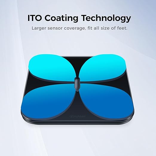 - HIGH PRECISION WITH ITO COATING TECHNOLOGY: Yunmai Smart Scale Proβs advanced ITO-coating provides complete sensor coverage on the surface, ensuring precise Bioelectrical Impedance Analysis (BIA) with every step, delivering accurate and reliable body composition measurement to help you achieve your fitness goals.