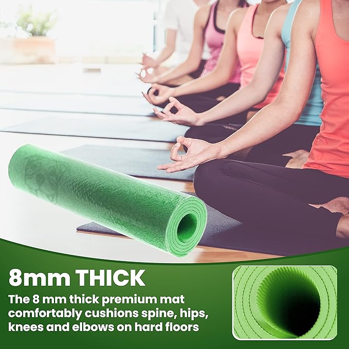 Mat-Essential Green TPE, Latex-free, Eco-friendly, Non-toxic, Non-slip, thick mat 6' x 2' x 8mm and a Donation to Charity