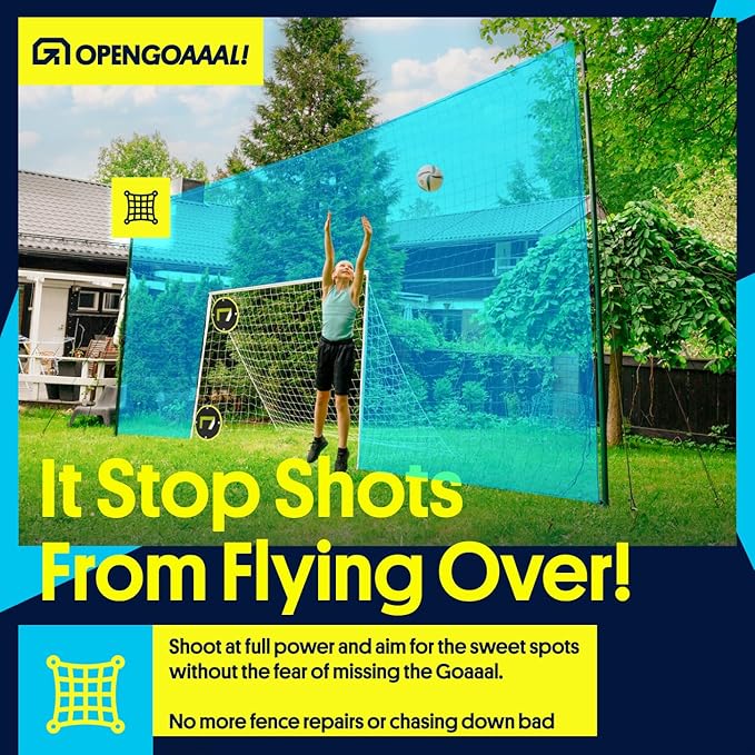 - FENCE-FRIENDLY SOLUTION: Protect your surroundings with the Open Goaaal system. Our rebound net is designed to save fences from ruin and ensure a worry-free training session. The rebounder feature not only keeps the ball in play but also safeguards your environment from potential harm