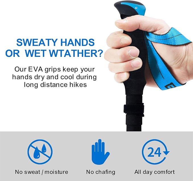 - 【BEST TRAVEL PARTNER】BISINNA trekking poles will absorb shocks and vibration, reduce fatigue and pain from your joints and muscles, prevent falls by dramatically improving your balance, and even help check that wobbly rock for stability before you step on it. If you are not completely satisfied with these trekking poles for any reason, simply contact us, we will help you solve the problem.Buy with no risk!