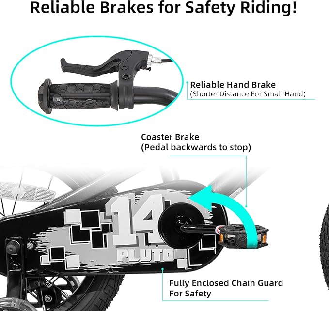 - DIY DECAL & SAFE CHAIN GURAD - Your child will get a DIY decal, they could make a unique bike with the decal by sticking their name on the frame or chain guard. The chain guard well protects the chain, it will last longer than other bikes, your child will not get hurt when try to touch the chain.