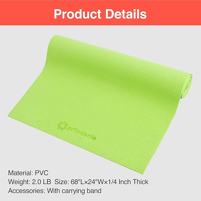 - 【LIGHTWEIGHT】 Maximal portability for easy carrying to the gym, studio, park, or beach. Mat Size is 68 × 24 inches provides comfort and stability at a total weight of only 2.0 lb. for the 1/4" mat and 3.3 lb for the 1/3" mat. Perfect for travel, beach and Yoga Class.